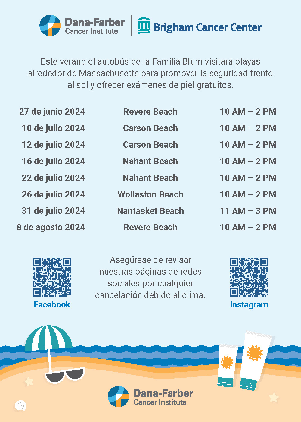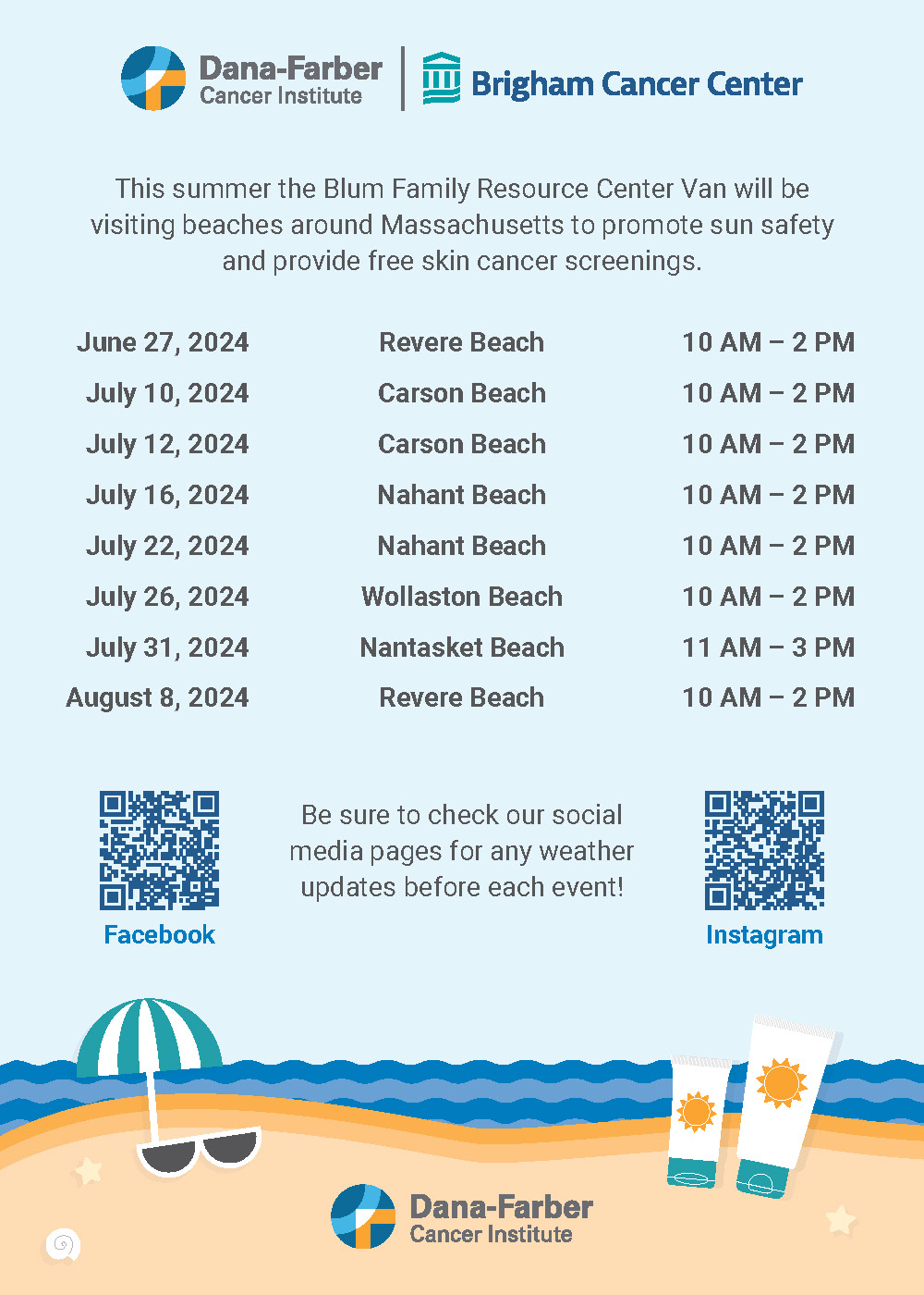 For more information, including details about the upcoming screening schedule, please visit: Dana-Farber's Sun Safety/Skin Cancer Prevention Program or email blum_van@dfci.harvard.edu.