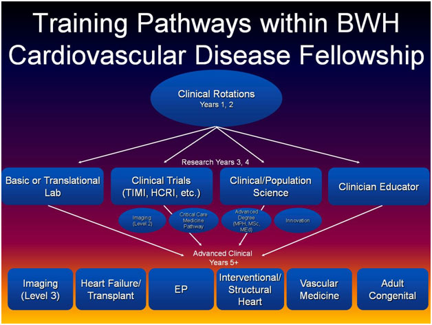 The Cardiovascular Disease Fellowship at Brigham and Women’s Hospital (BWH) is a 3-4 year, ACGME-accredited fellowship of the highest caliber. The program trains the premier clinicians and the future leaders in the field of cardiovascular disease. The primary goal of the training program is to prepare trainees to be outstanding academic cardiologists involved in research, education and clinical activities.