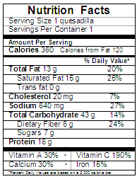 Yield: 1 servingServing Size: 1 quesadillaSource: BWH Food Service